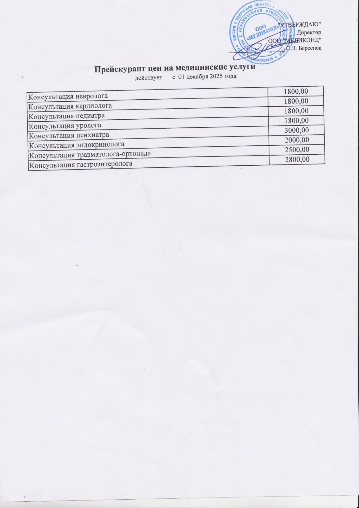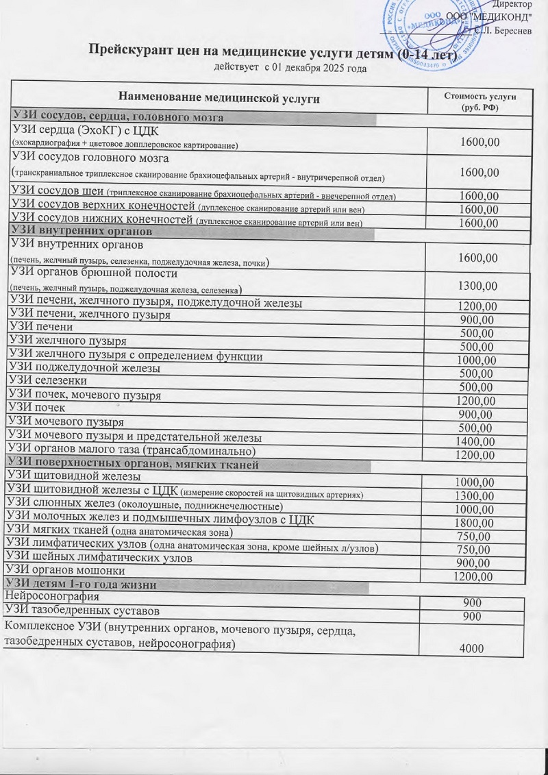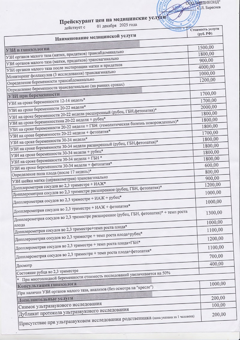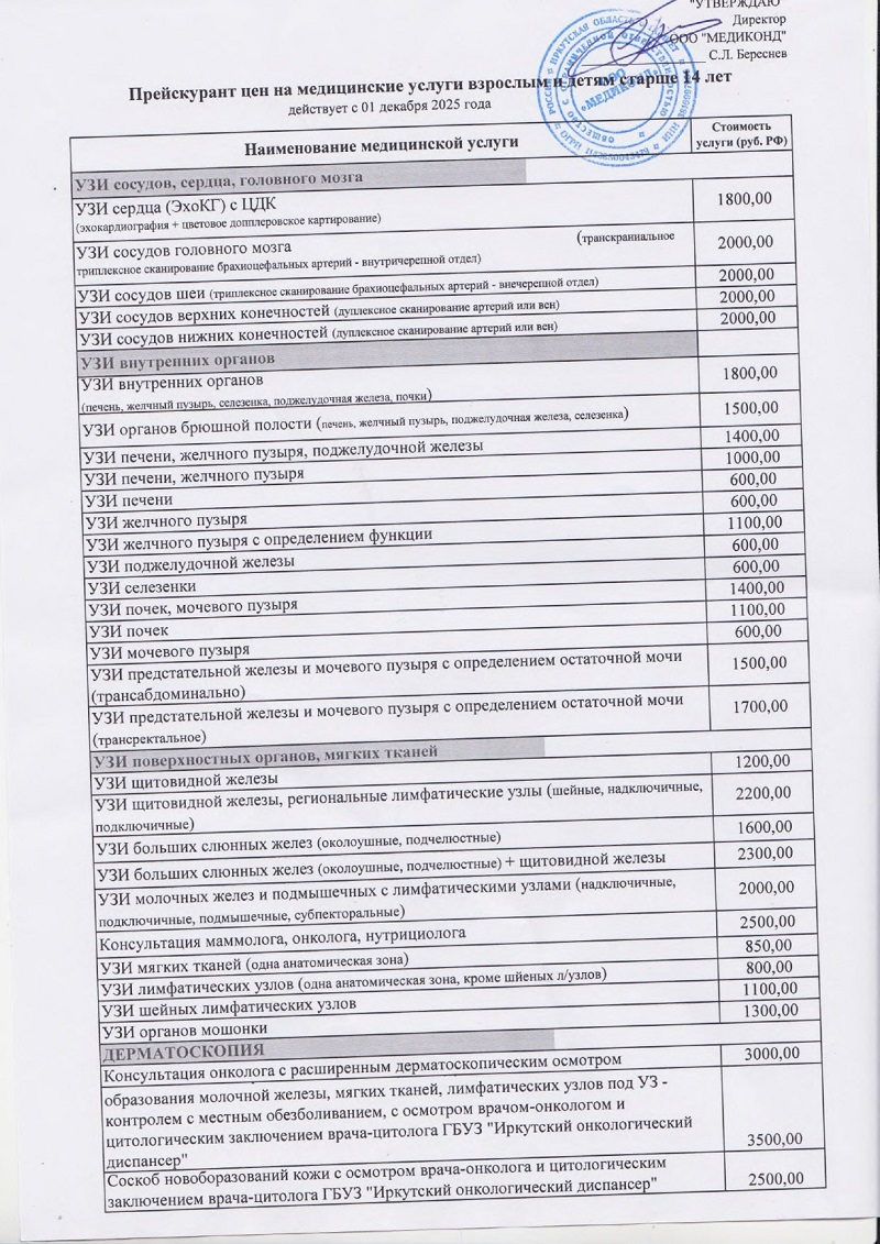 ПРАЙС-ЛИСТ на лабораторную диагностику (полный перечень)